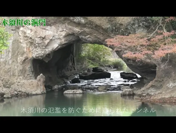 木須川の氾濫を防ぐために造られた手掘りのトンネル『木須川の洞門』の中に入ってみました。歩いて向こう…