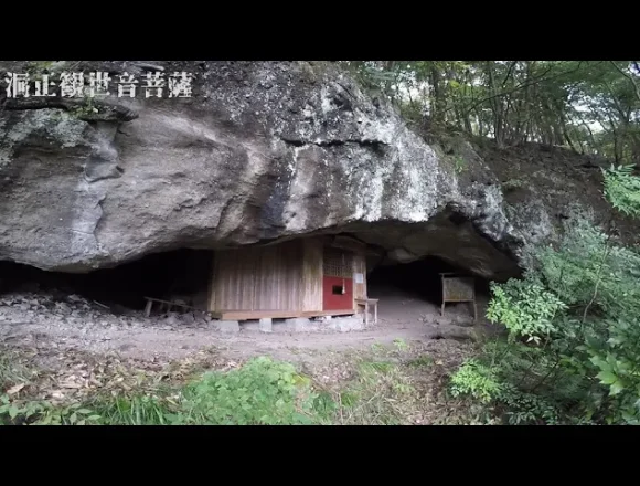 洞窟に埋め込まれたお堂『洞正観世音菩薩』山の上の崖下にあります。詳細は調べてもよくわかりませんでし…