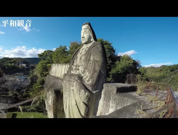 大谷石の採石場跡地に彫られた、高さ27メートルの巨大な観音像。第二次世界大戦の戦没者に向けた慰霊と…