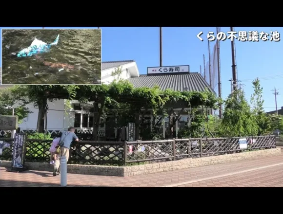 くら寿司の店舗前にある『くらの不思議な池』ここには魚型ロボット・ギョボットが泳いでるようです。天然…