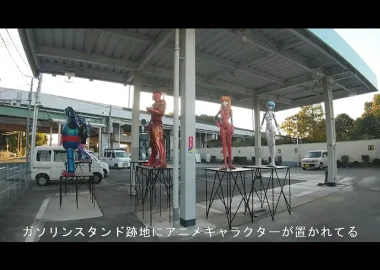 ガソリンスタンドの跡地になぜかアニメキャラクターが置かれてます。これは一体…