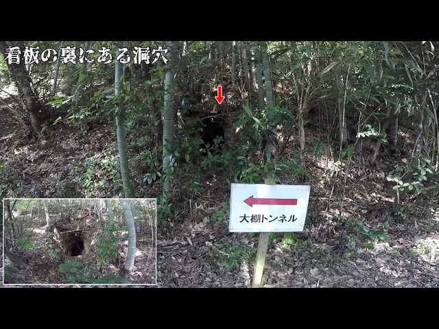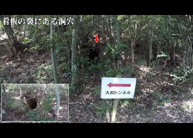 看板の裏に小さな穴を見つけました。この穴は何なのか?潜入してみます。二つに分かれてる?ようだけど。