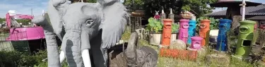 民家に置かれた、恐竜の置物が謎です。なぜこんなところにあるのか?しかもリア…