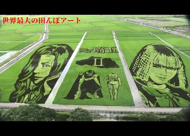 世界最大の田んぼアートがあるということで、古代蓮の里展望タワーの頂上まで行き、巨大な田んぼアートを眺望しました。テーマがその都度変わるということらしく、今回訪れたときは飛んで埼玉2でした。場所:埼玉県行田市