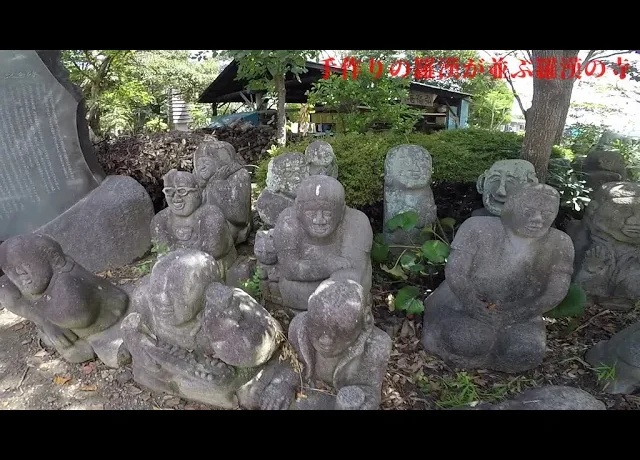 境内のあちこちに手作りの羅漢像が置かれてます。キャラクター像もあったりと、自由すぎる!地域の「羅漢を彫る会」の方々が作られたそう。場所:埼玉県久喜市