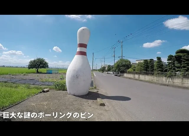 道路沿いにある謎の巨大なボーリングのピンがある場所に行ってみました。何も書かれてないし、これは一体・・・。
