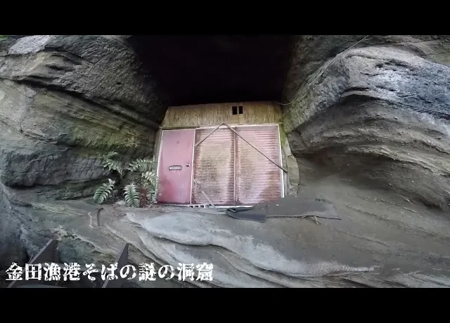 金田漁港そばの海岸沿いあり、戦時中に洞窟陣地として作られ、戦後に住居または倉庫に転用されていた?そう。