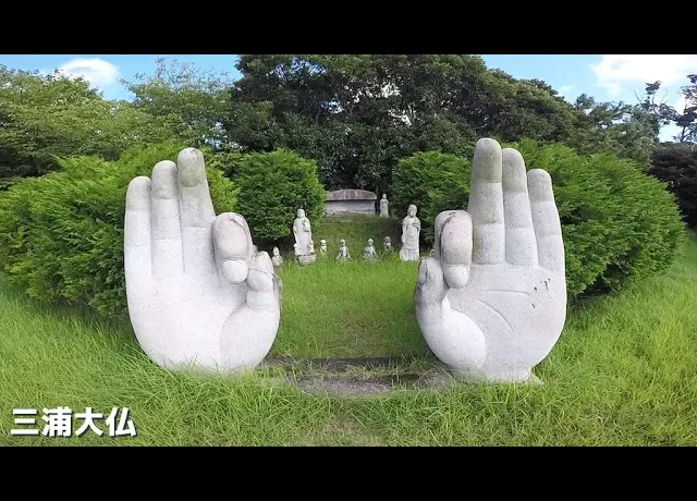 三浦大仏は、三浦半島の久里浜霊園という霊園内にあります。アートオブジェだらけの霊園はかなりインパクトあります。