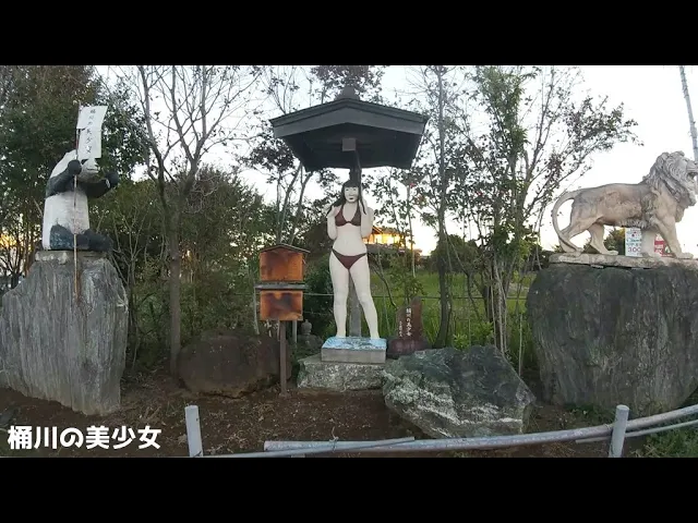桶川市にある謎の少女像『桶川の美少女』大工 岡野靖夫さんがコンクリを固めて作った作品だそうです。場所:埼玉県桶川市