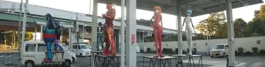 ガソリンスタンド跡地にアニメキャラクターが置かれてる!