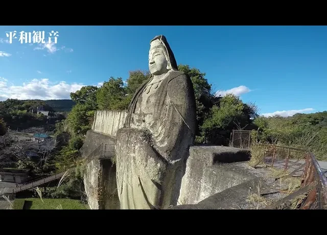 大谷石の採石場跡地に彫られた、高さ27メートルの巨大な観音像。第二次世界大戦の…