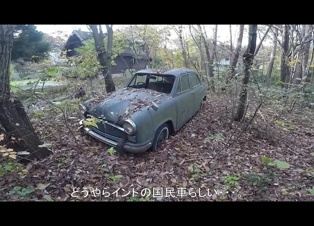 民家の庭にレトロな廃車を見つけました。調べたらインドの国民車らしい。なぜこんなところにあるのだろう・・・。