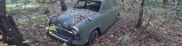 民家のそばに放置されたインド製の廃車