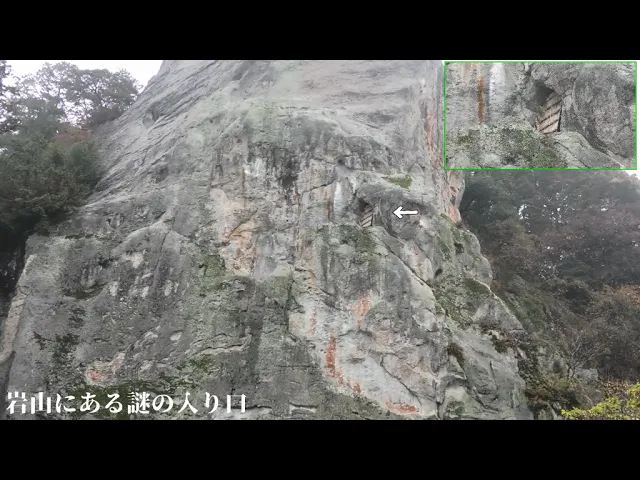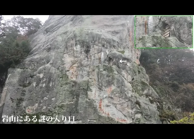 高さ64mほどの岸壁の真ん中あたりに謎の木の扉の入り口があります。この扉に続く階段や道は存在しません。扉の中には8畳1間の部屋があると言われており、およそ950年前、岩の空洞に宝物を入れ、扉をつけて奥の院としたそう。場所:栃木県塩谷町