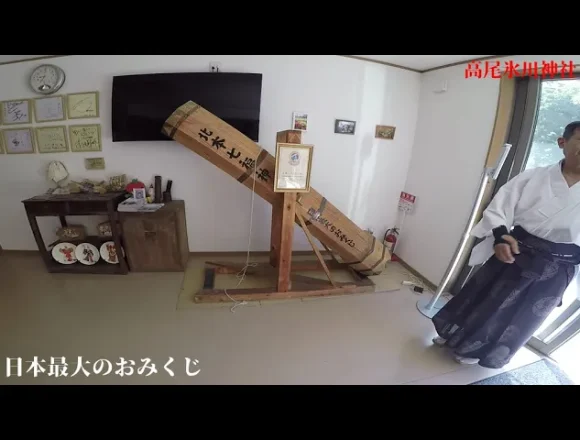 高尾氷川神社にある「日本最大のおみくじ」長さ2メートル15センチで日本一大きい。おみくじの棒がとに…