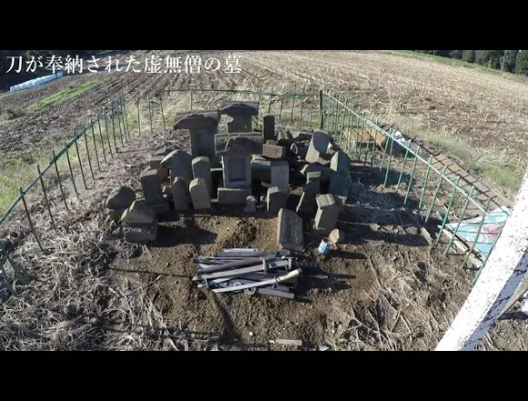 田んぼの中にポツンとある虚無僧の墓ですが、刀が多数奉納されてます。敵に出くわし…