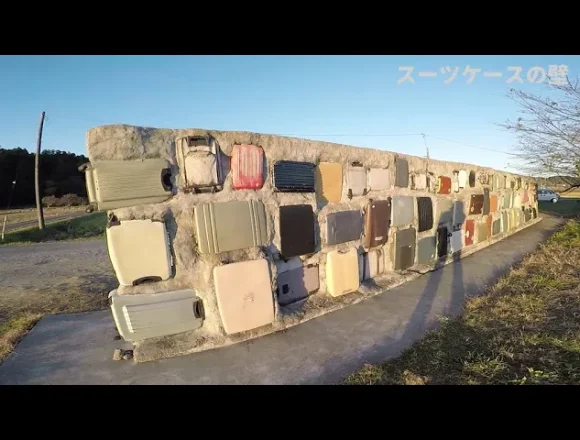 小湊鉄道の無人駅「上総川間駅」の目の前に、大量のスーツケースの壁があります。ど…