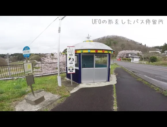 UFOの形をしたバス停留所がありました。バス停の名前はUFOの里になってます。…