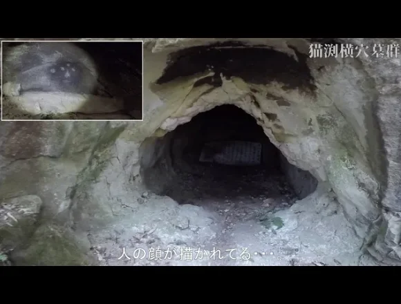 横穴群の中の一つに不気味な人物が描かれた壁画があります。奥壁には人面・魚、側壁…