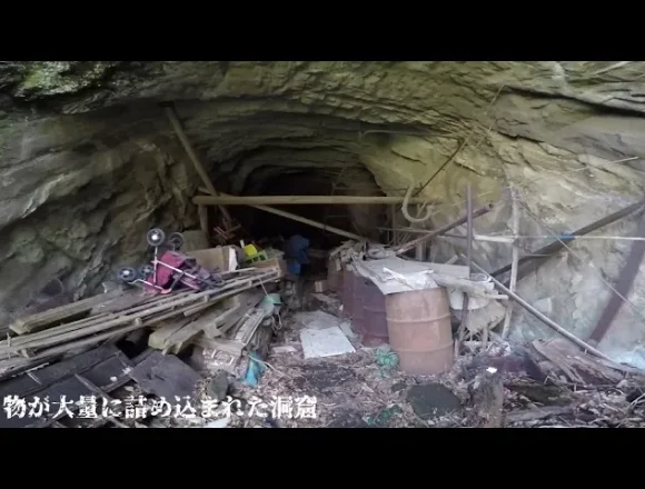 漁港近くにて、物が大量に詰め込まれた洞窟があったので中に入ってみました。隣の洞窟と繋がってるみたい…