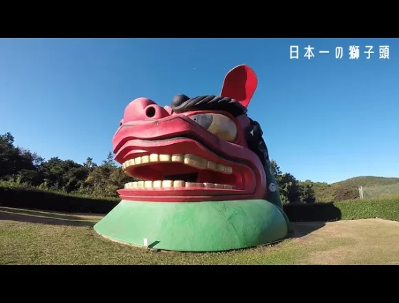 「石岡のおまつり」に巡行する獅子頭を巨大サイズにしたものが丘にポツンと置かれてます。台座からの高さ…
