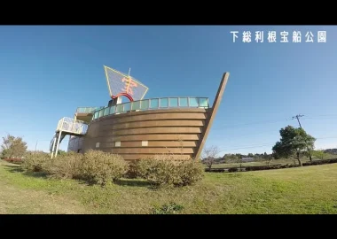 この公園は、七福神が乗っている宝船の展望台があり、芝生広場を横断する園路は…