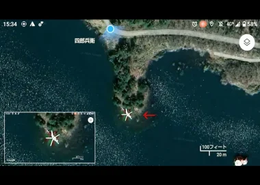 地図で見つけた溜池の岬の先端にある謎の物体。これはいったいなんなのだろう?…