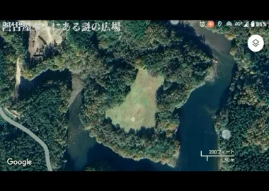 地図で見つけた西古屋ダムにある広場まで行ってみます。拡大すると広場に何かが…