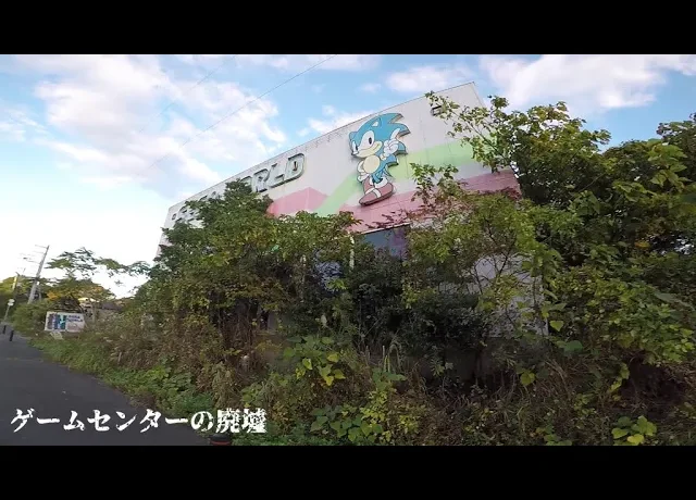 ゲームセンターの廃墟を探索してみます。中はがらんとしております。ソニックのキャラが虚しくありますね・・・。