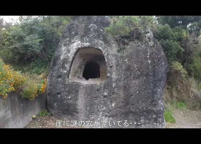 金田漁港そばの海岸沿いあり、戦時中に洞窟陣地として作られ、戦後に住居または…