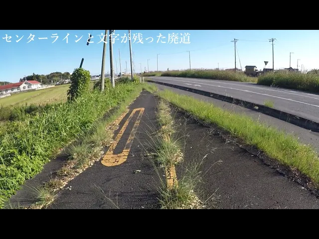 センターラインと文字が残された廃道がありました。現在の県道271号線が整備される以前に使われていた道路で、2005~2009年に廃止されたよう。場所:茨城県龍ケ崎市川原代町