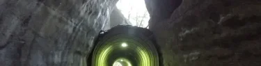 中央部分の天井が落ち、そこから空を見上げることができる素掘りトンネルです。真ん…