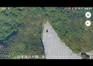 地図で見つけた駐車場の片隅にある黒いものの場所に行ってみます。これはなんな…