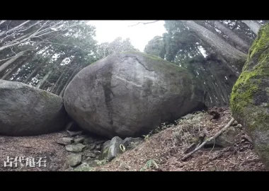 高さ10.7m、周囲50.5m、重量2800トンの亀の甲羅に似た巨石。石の…