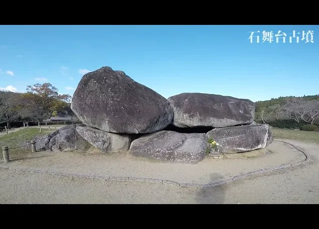 6世紀の築造。巨石30個を積み上げて造られた石室古墳で、その規模は日本最大級を誇ります。盛土が失われて、露出した天井石の上面が平らなことにちなんで、石舞台と呼ばれるそうです。場所:奈良県高市郡明日香村