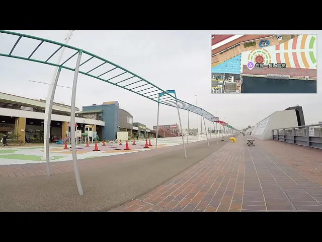 ショッピングセンター「サンシャインワーフ神戸」の敷地内に設置されている「世界一長い雲梯」ギネスにも公式に認定されており、長さ149.992m、はしごの数556本もあります。場所:兵庫県神戸市東灘区