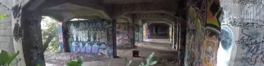 崖にあるコンクリートむき出しの廃墟焼肉要塞(ブロックアート)を探索してみます。…