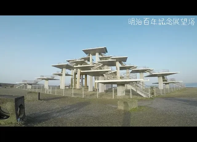 明治100年を記念してつくられた五葉松の形ををした展望台です。東京湾の突端、富津岬の最先端にあります。天気が良い日には、明治から大正にかけて首都を防衛する目的でつくられた海上要塞も見られるようです。場所:千葉県富津市富津