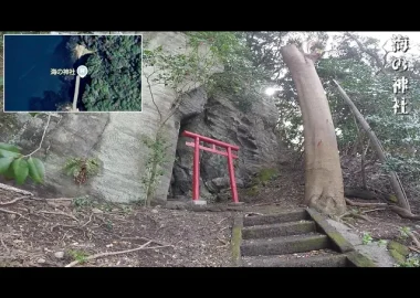 地図で見つけた洞窟の中にある海の神社に行ってみます。自分で電気を点けて入る…