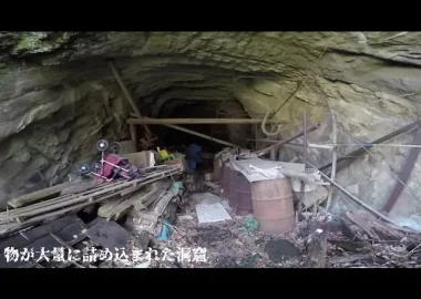 漁港近くにて、物が大量に詰め込まれた洞窟があったので中に入ってみました。隣…