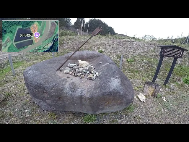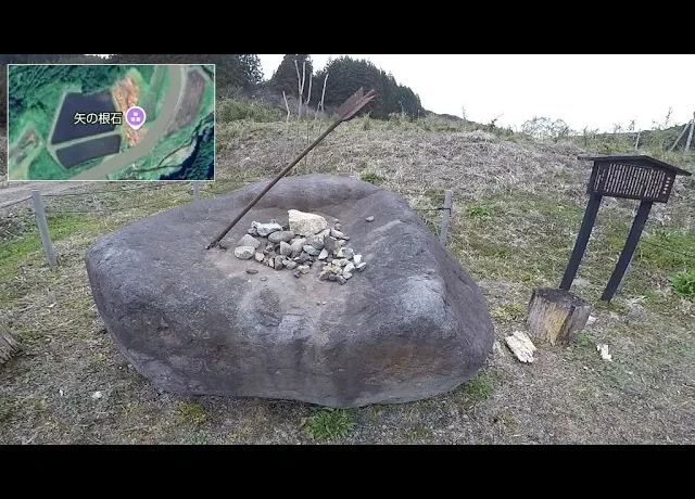義経一行が兄頼朝のもとへ向かう途中、弁慶が矢を取り出し、「わが願い吉ならば、この石に立てよ」と、傍らにあった石に矢の根を指先にて押し込めれば、矢が岩に突き刺さった石。場所:栃木県那須郡那須町