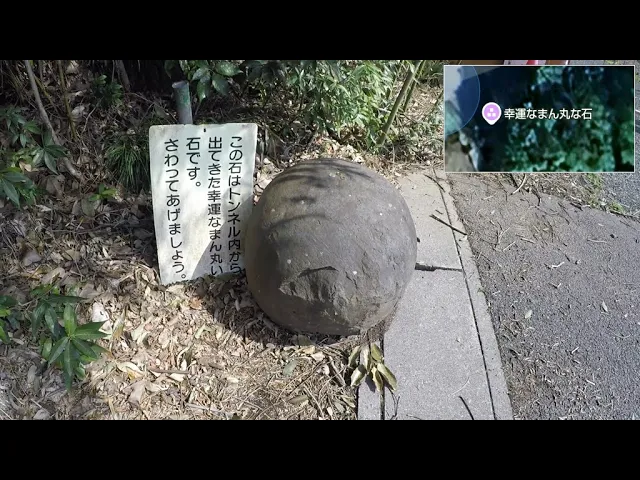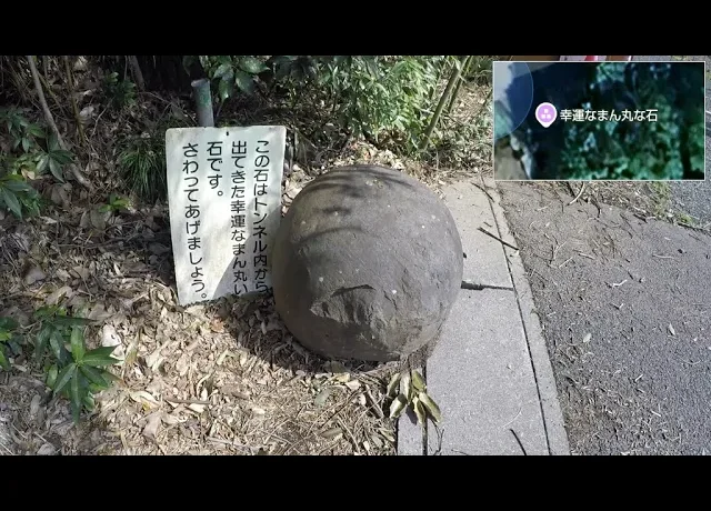 トンネル工事中に出てきたという丸い石・幸運なまん丸い石という名前が付いてるみたい。地図では丸な石になってるけど・・・。場所:茨城県常陸大宮市