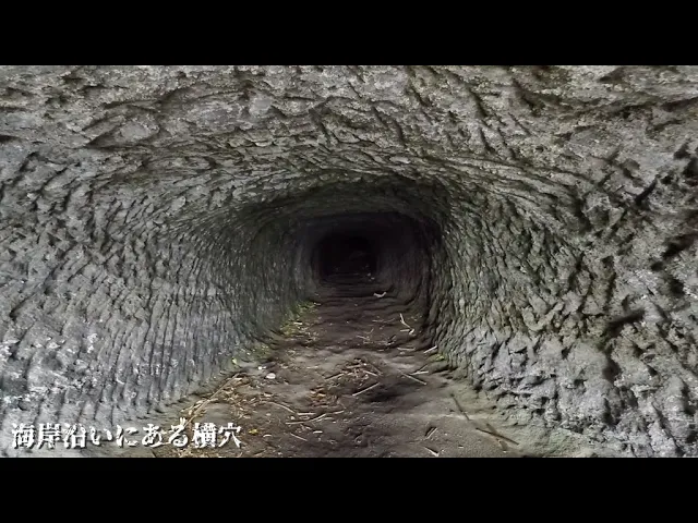 漁港近くにて、物が大量に詰め込まれた洞窟があったので中に入ってみました。隣…