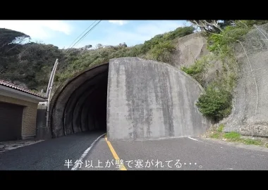 3分の2程度がコンクリートで封鎖され、残りの部分が通行可能な奇妙なトンネル…