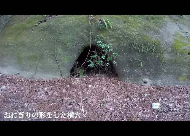 おにぎりの形した横穴を見つけたので中に入ってみました。中はどうなってるのか?場所:亀山湖の近く