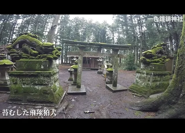 一色鐘鋳神社には地元の名工・小林和平作の飛翔獅子があります。そして苔むした雰囲気がいいです。昭和9年建立した狛犬です。場所:福島県東白川郡棚倉町
