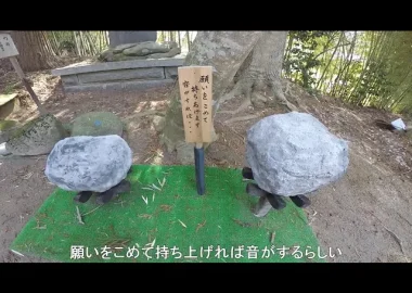 明石神社の境内にある持ち上げると音がするという不思議な石。はたして軽いのか…