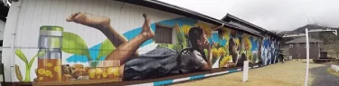 豊国酒造の酒蔵に描かれた巨大壁画が珍しい!
