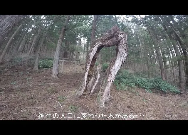 神社の入口に変わった木があるけどこれは?偶然なのだろうか?場所:福島県白河市