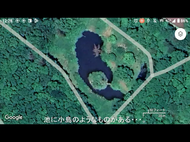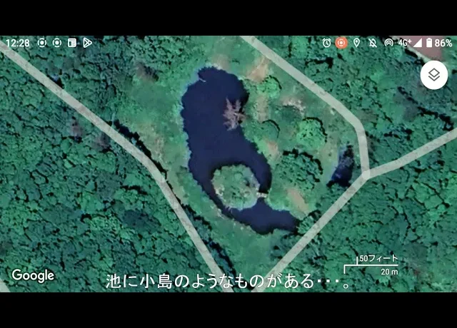 地図で見つけた池に浮かぶ小島らしき場所が気になったので行ってみます。ここはいったい・・・・。